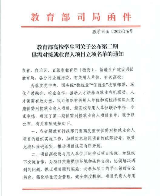 日前,教育部高校学生司印发《教育部高校学生司关于公布第二期供需对接就业育人项目立项名单的通知》,星空四个课题项目获批立项。