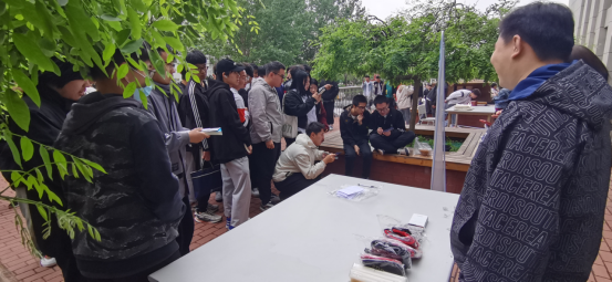 2023年4月23日12点,图书馆门口聚集了刚刚下课就踊跃来参加活动的同学们,他们有的在读书倡议条幅上郑重地立下自己的读书决心;有的聚拢在“名家名著猜猜看”活动展台,或冥思苦想,或奋笔疾书,都争先恐后将自己猜出的名著作品答案呈现给老师看;有的对知网小站台颇为关注,纷纷围在老师身边认真聆听知网总库的使用方法;还有的在老师的指导下专心制作着压花书签……