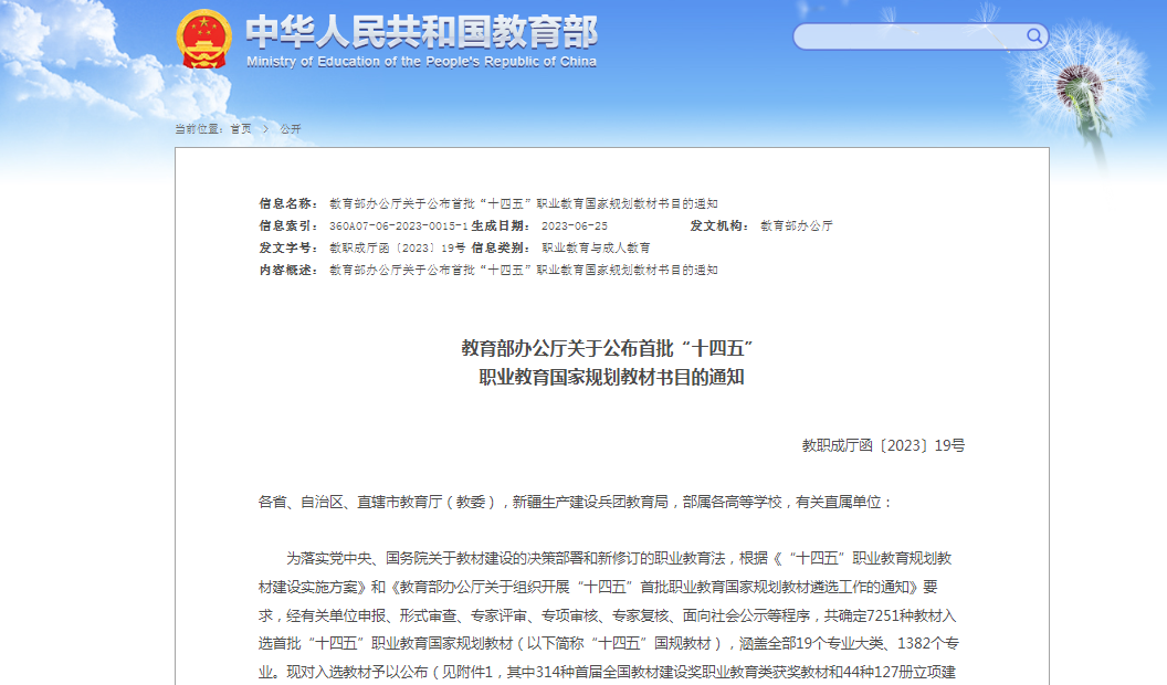 2023年6月19日,教育部办公厅发布了《教育部办公厅关于公布首批“十四五”职业教育国家规划教材书目的通知》,汽车工程学院赵宏教师主编的《汽车发动机故障诊断与修复》教材被确定为首批“十四五”职业教育国家规划教材书目(高职专科),何泽刚老师主编的《智能新能源汽车认知与操作安全》教材被确定为首批“十四五”职业教育国家规划教材书目(中职) 。