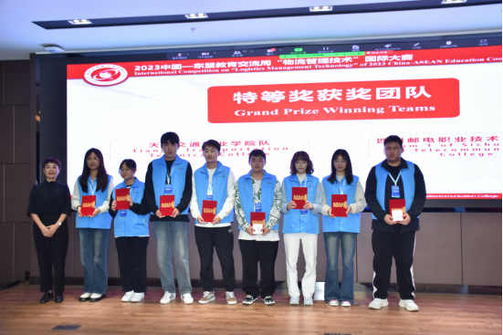 2023中国-东盟教育交流周“物流管理技术”国际大赛于2023年11月10日在四川邮电职业技术学院举行。星空由张红云、高荧老师指导的22级现代物流管理专业学生王祥蕾、孙梓萌、王皓艺、王炳富以最高分的成绩荣获特等奖第一名。