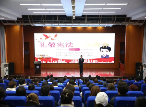 活动中,检察干警和同学们一起进行宪法宣誓,开展《中华人民共和国宪法》晨读,刘海东副检察长以《礼敬宪法法润青春》为题进行了宪法主题讲座,结合典型案例,从宪法修订历程、宪法和个人的关系、宪法规定等方面,引导大家尊崇宪法法律,让宪法精神根植于每一名师生的心中。