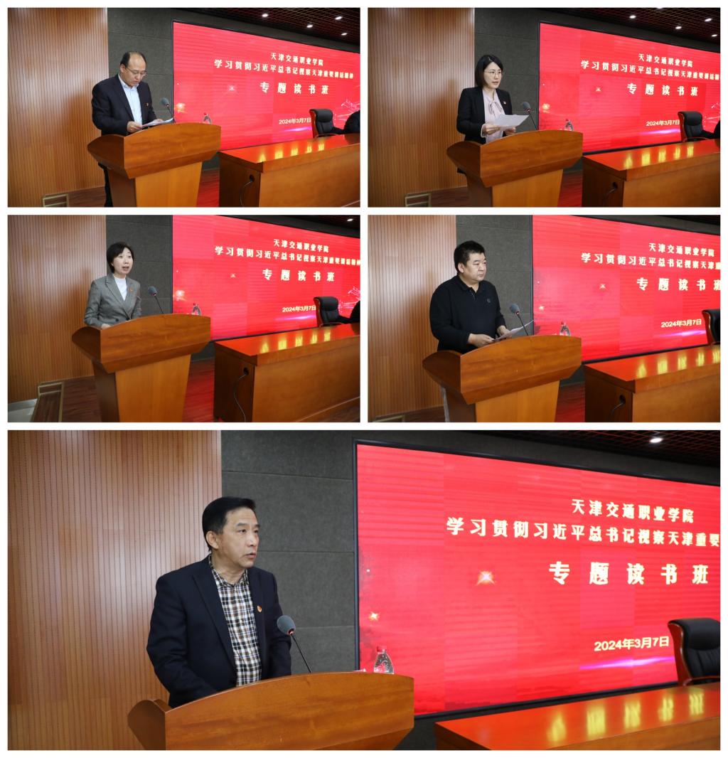 读书班期间,5名党员干部分别结合读书班学习成果和工作实际进行交流发言。大家一致认为,习近平总书记亲临天津并发表重要讲话,从战略和全局高度为天津发展指引航向,赋予我们新时代、新使命、新任务,作为职业教育的先行者,必将带头学习、带头思考、带头落实,聚焦经济建设的中心工作和高质量发展的首要任务,共同携手推进学院高质量发展实现新提升,奋力谱写中国式现代化交院篇章。