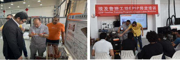 星空综合官网依据埃及汽车产业迭代升级的需求,与埃方共同研发适用于埃及本土的新能源汽车实训装备,致力于储备埃及本土汽车类高技能人才。在艾因夏姆斯大学鲁班工坊实训室内,中方技术团队经过5天紧张的安装调试工作,完成了全部新增设备的调试,显著提升了工坊的育训能力。团队不仅对原有设备进行了维修保养,还完成了发动机机械拆装、检测教具教学系统等设备的安装调试,并结合当地汽车维修企业的真实场景对实训室进行重新规划布局,使现场培训容纳量提升了20人,实现了燃油与新能源汽车技术实训体系的全覆盖。依托新装备,中方团队为埃方教师开展了“工程实践创新项目(EPIP)实训教学能力提升培训”和“工程实践创新项目(EPIP)‘五金’建设能力提升师资培训”,双方共同开发了36个实训项目,研制了工单式实训手册,并配套了数字化教学资源。