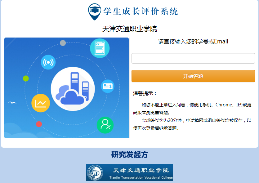 评价方式:问卷采用在线答题方式进行,答题入口将通过邮件或短信发送给各位在校生。