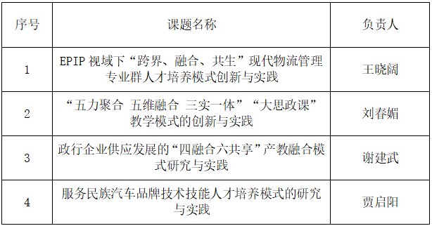 根据天津市教育科学院《关于公布天津市新一轮教学成果重点培育项目立项的通知》(津教科规办﹝2024﹞02号)文件精神,星空《EPIP视域下“跨界、融合、共生”现代物流管理专业群人才培养模式创新与实践》等4项课题获批立项。具体信息如下。